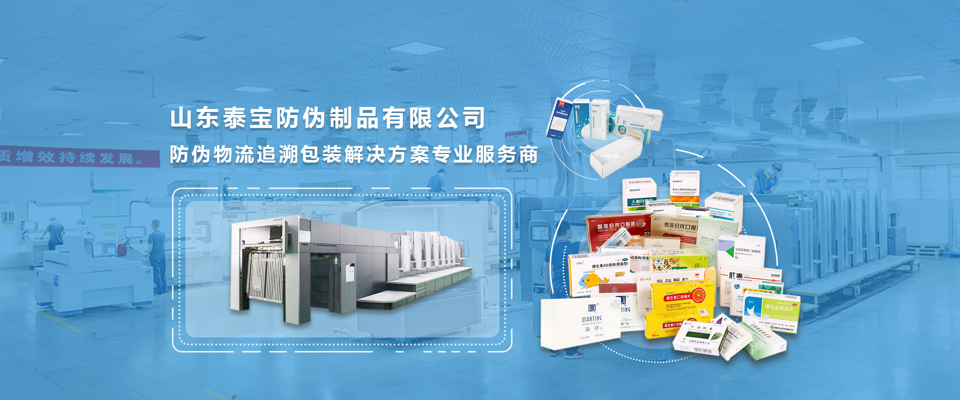 山東泰寶防偽制品有限公司成立于2001年,專業(yè)從事包裝盒研發(fā)、生產(chǎn)的高新技術(shù)企業(yè)。具備設(shè)計(jì)、數(shù)碼印刷、UV印刷、可變信息燙印、模切、糊盒在內(nèi)的生產(chǎn)裝備及管控體系,為客戶提供整套盒碼一體智慧包裝解決方案。